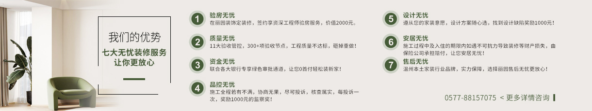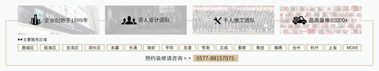 温州本土装修企业 | 成立与1999年 | 注册资金5000万元 | 100人设计师 | 1000人施工队 | 定制设计装修¥ 0.00立即购买